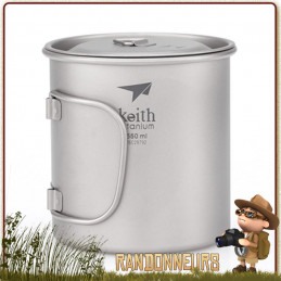 Tasse Titane avec poignée 45 cl KEITH - La tasse popote Keith Titane est un pot en titane ultra léger pour la randonnée ultra light. D'un volume de 45 cl, et seulement 77 g, cette popote Keith est idéale pour les bivouacs légers. Livrée avec un couvercle avec anse repliable.