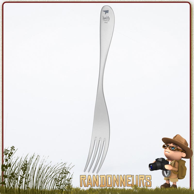 Fourchette Titane Keith- Fourchette en titane Keith, idéale pour prendre vos repas directement dans un pot ou tasse. 100% titane, ultra légère, finition mate. Parfaitement adaptée au trek et la randonnée minimaliste