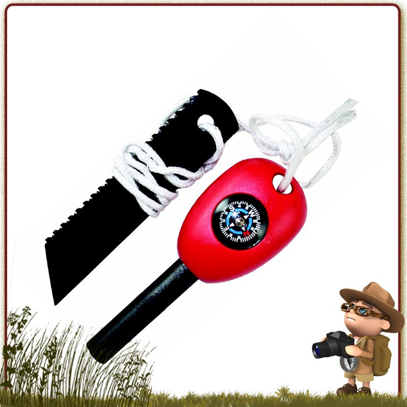 Pierre à feu avec micro-boussole intégré et grattoir à dents BCB