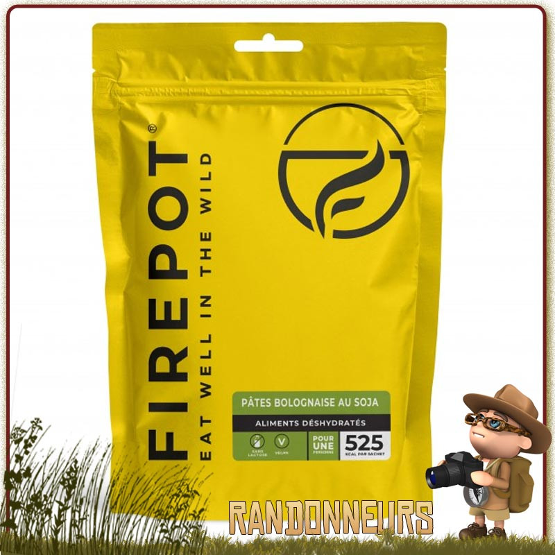 sachet repas deshydrate vegan Pâtes Bolognaise au soja Firepot