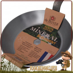 POÊLE A FRIRE DE BUYER 24 cm - Poêle à frire DeBuyer, diamètre 24 cm, permettant de nombreuses cuissons : saisir, sauter, dorer, mijoter... Tout acier Minéral B, de fabrication française, la poêle à frire De Buyer est idéale pour un campement bushcraft originel, 100% naturel et sans revêtement