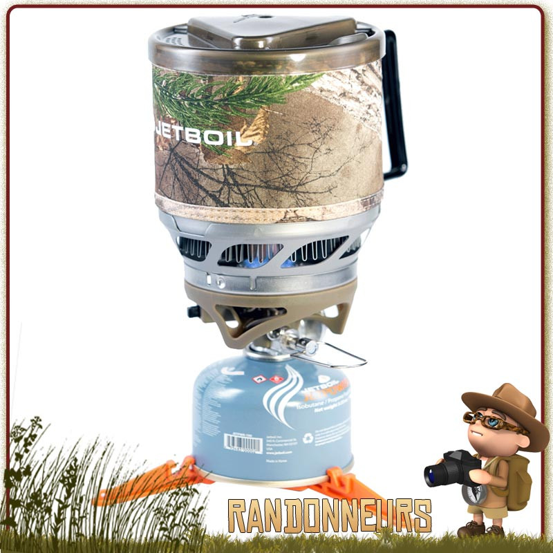 • Réchaud MINIMO Camo JeBoil est un réchaud ultra léger avec popote et régulateur thermique. Inclut un support casserole