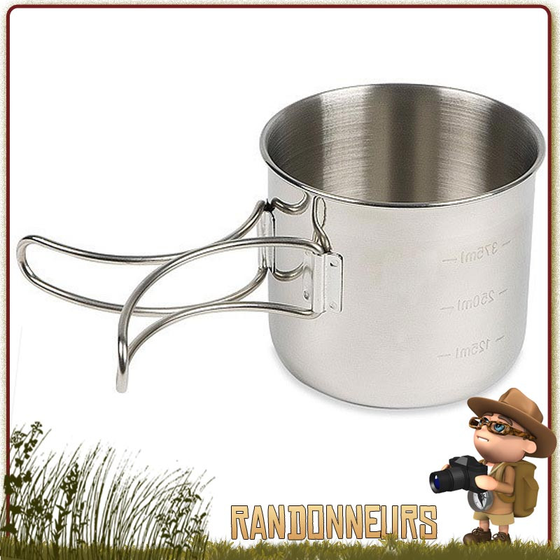 QUART INOX 25 cl CAO - Quart camping Inox de 25 cl CAO avec anse. Robustesse et durée de vie sont les qualités premières de ce quart Inox pour le camping, campement bushcraft. Résiste au feu de bois et aux conditions extrêmes de bivouac dans la nature