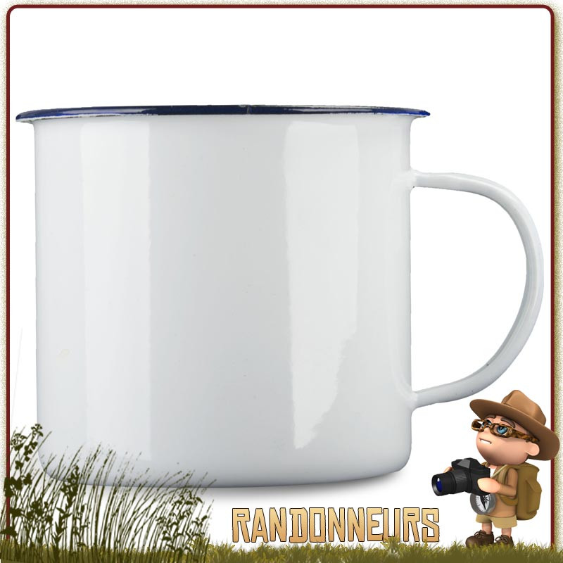 Tasse Mug 56 cl tole émaillée BLANC Highlander - MUG de camping émaillé BLANC de 56 cl. Retrouvez les sensations d'antan avec cette vaisselle acier émaillée Highlander, le bivouac bushcraft ou du far west d'excellence. Vaisselle tole émaillée pour le camping nature originel. Robustesse et facilité de nettoyage
