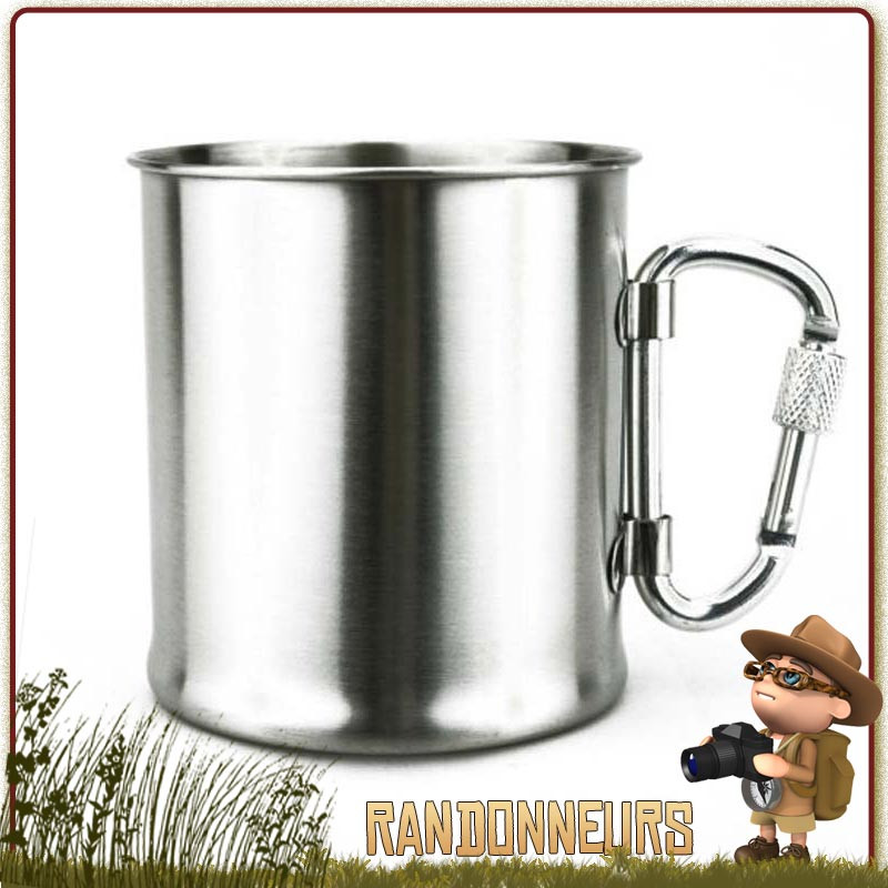 Tasse Inox Double Paroi 30 cl avec mousqueton Highlander - Tasse Inox avec mousqueton de 30 cl. Double paroi, légère, compacte et robuste, cette tasse pour la randonnée légère trouvera facilement sa place accrochée sur votre sac à dos. L'inox assurant la légèreté et résistance de cette tasse de randonnée et camping