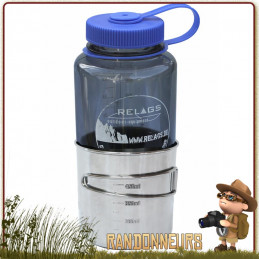 Tasse 60 cl Inox Relags - Tasse en acier inoxydable robuste et de qualité Relags. D'un volume utile de 60 cl, ce mug inox possède des poignées repliables. Pratique son marquage de graduation extérieur. Diamètre compatible avec les gourdes Nalgene de 1 Litre.