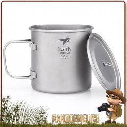 Tasse Titane avec poignée 55 cl KEITH - La tasse popote Keith Titane est un pot en titane ultra léger pour la randonnée ultra light. D'un volume de 55 cl, et seulement 86 g, cette popote Keith est idéale pour les bivouacs légers. Livrée avec un couvercle avec anse repliable.